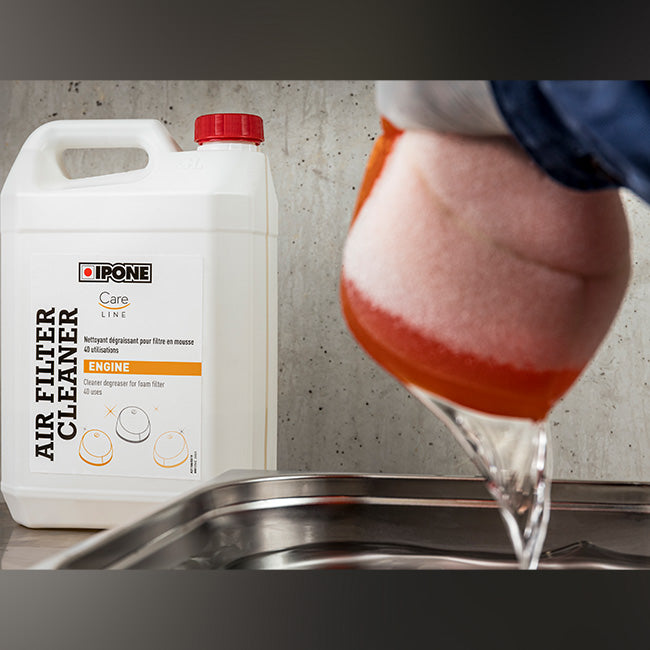 IPONE AIR FILTER CLEANER is a degreasing agent that is used to clean foam air filters, without damage.