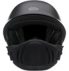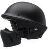 A helmet like no other. Rip the streets in the comfort of a half-helmet and the protection of a 3/4 lid with an adjustable, removable muzzle to shield you from road debris and shroud you in mystery.