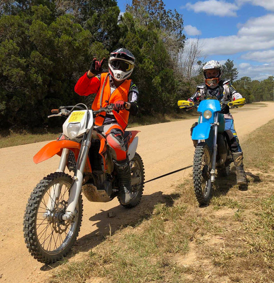 M8SAVER is a compact, lightweight motorcycle tow strap, designed for easy use and fits in your backpack, bumbag or mount to your handlebar. It's perfect for towing stranded bikes out of the bush!